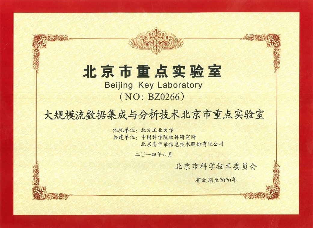 大规模流数据集成与分析技术北京市重点实验室成于2013年获批,是北京市首批大数据方向重点实验室(2017年北京市科委三年考评优秀)。实验室依托william威廉英国数据工程研究院,并联合中国科学院软件研究所和北京易华录信息技术股份有限公司(股票代码:300212)共建。