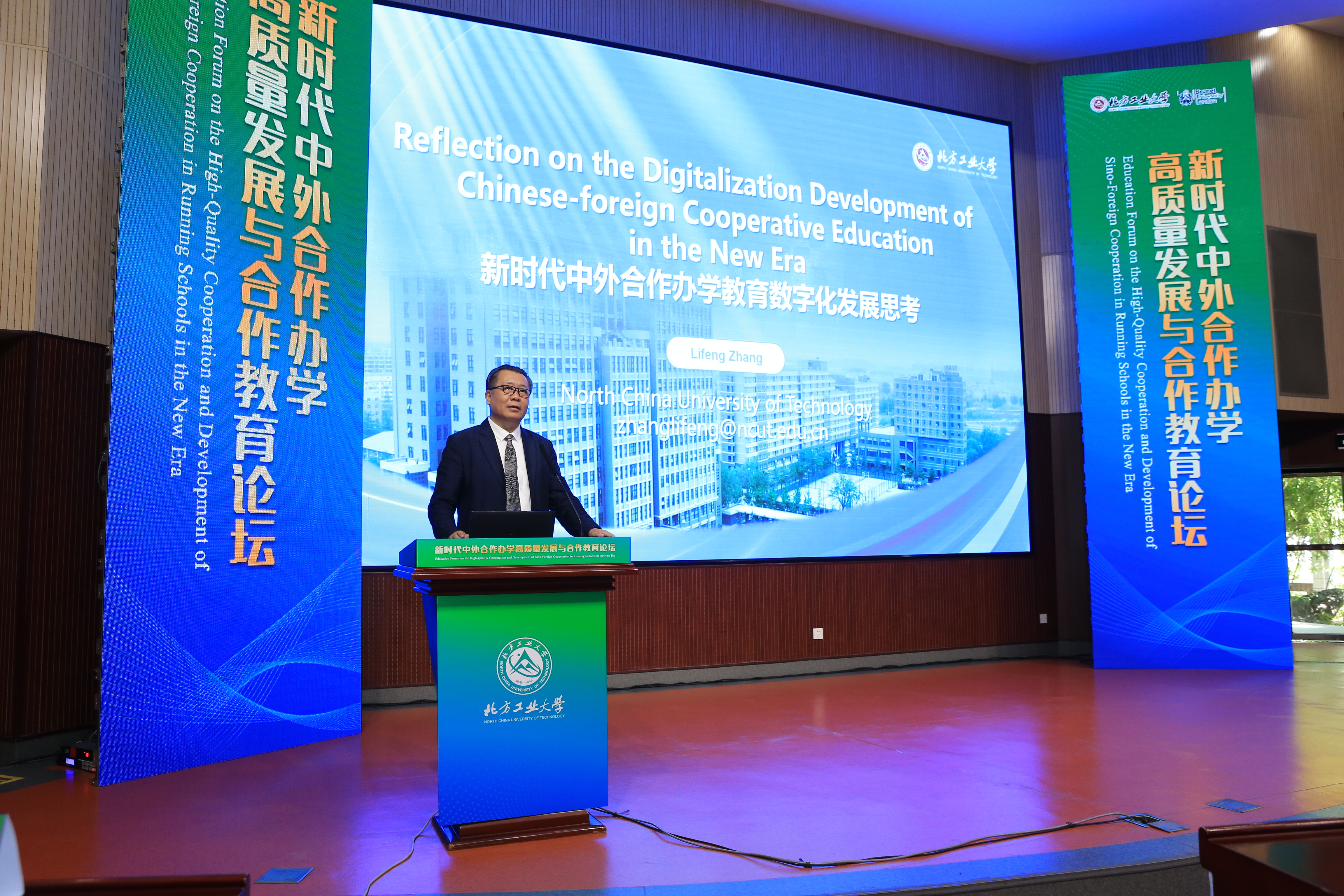 张立峰教授以“新时代中外合作办学教育数字化发展思考”为题发表了主旨演讲。他介绍了中国教育数字化发展的现状,并结合中外合作办学的特点,阐述了教育“数智化”和“国际化”发展的要求。他强调,人工智能赋能国际化教育,将是促进中外合作办学发展和重塑的强大动力。同时,教育者在人才培养过程中的情感交流和互动,也是人工智能无法替代的。