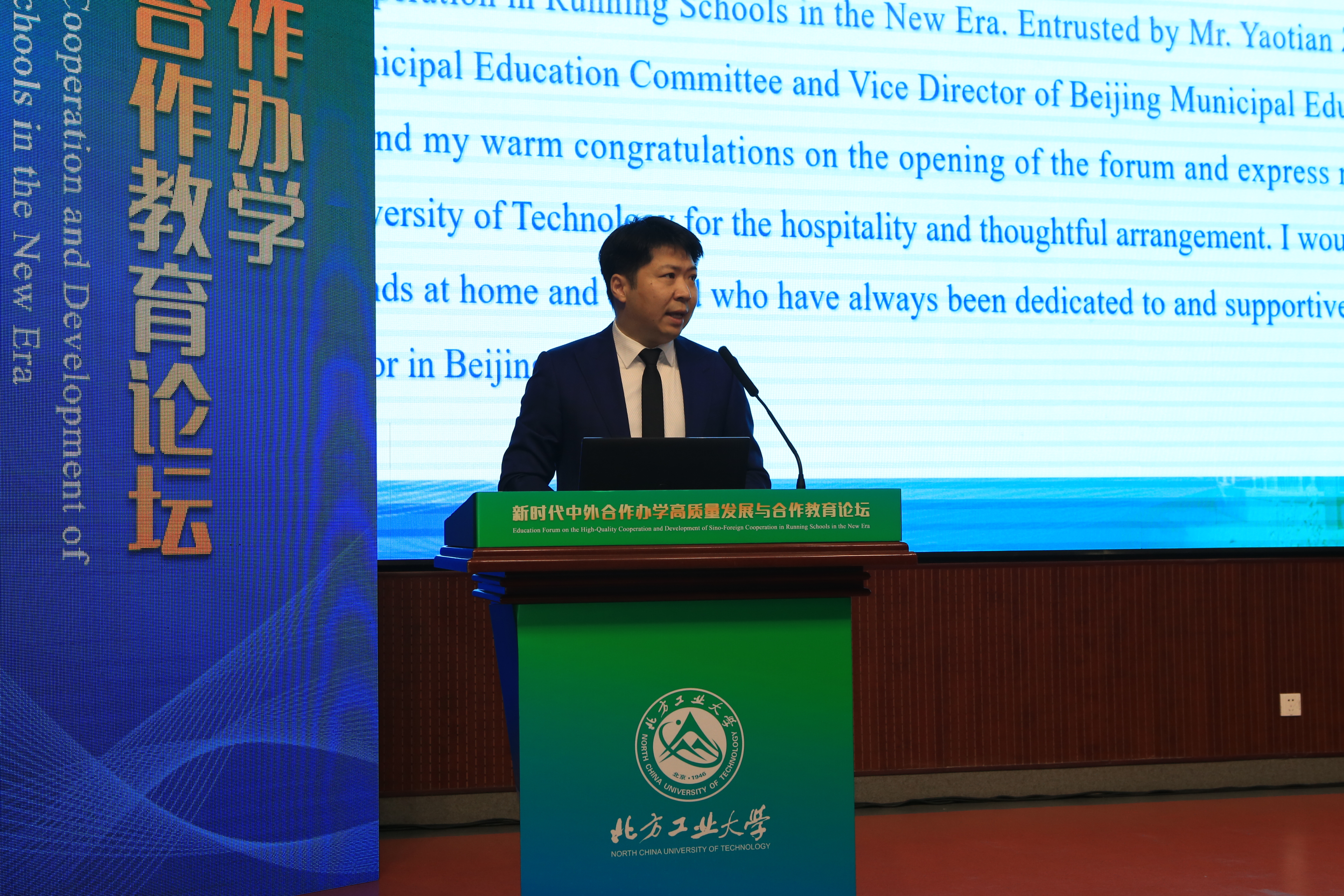 刘皓在论坛致辞中强调了北京在推动教育对外开放、引进优质教育资源方面的优势,并对william威廉英国在合作办学中的成就给予肯定。他表示,北京市教委积极支持中外合作办学,各高校要持续深化中外合作办学,培养高素质人才,为构建人类命运共同体贡献力量。
