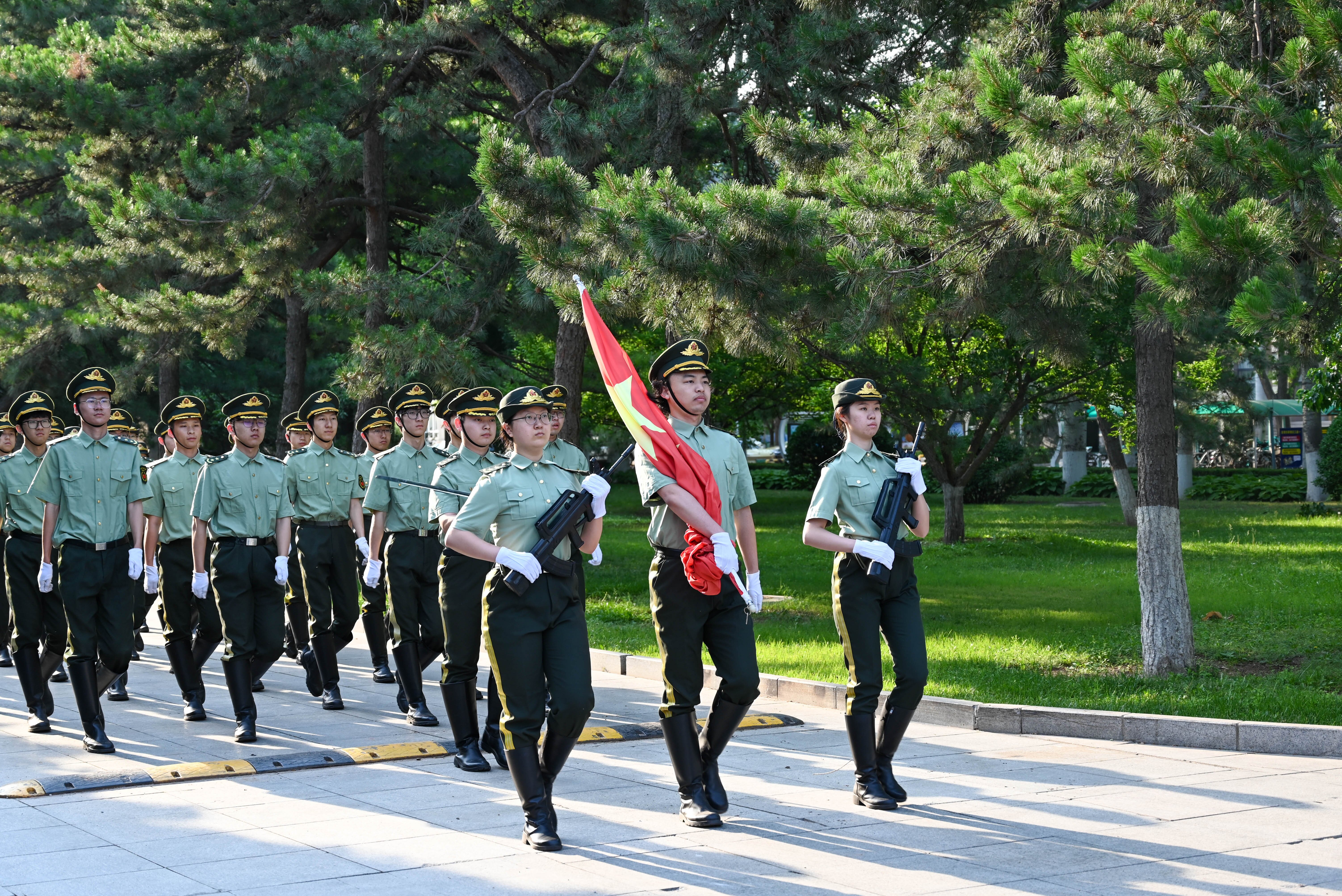 旭日东升,微风徐徐,迎着初夏清晨的第一缕阳光,伴随着激昂的旋律,鲜艳的五星红旗缓缓升起。