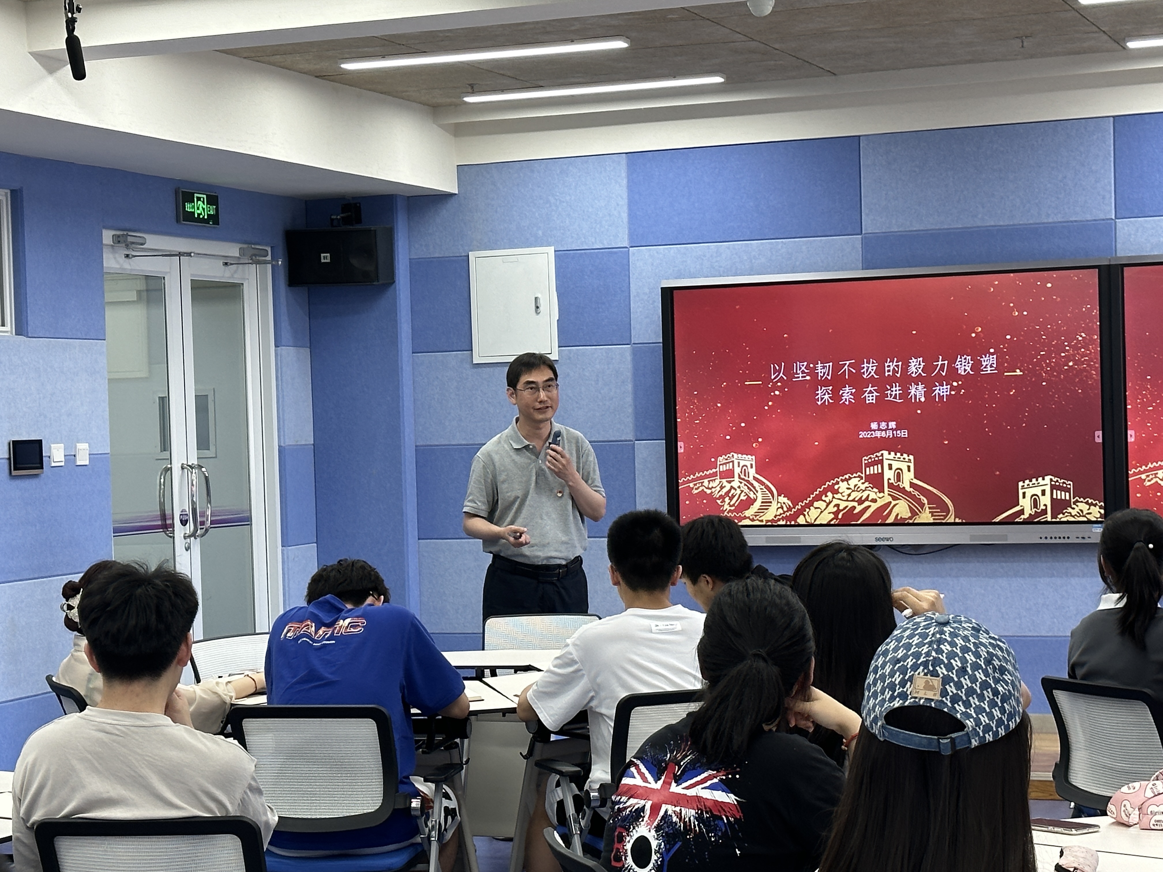杨志辉以《以坚韧不拔的毅力锻塑探索奋进的精神》为题,从布院学生最关心的留学学习生活切入,鼓励布院青年学生,要走出舒适区,不断的加强学习,用英文思维思考,积极面对纷繁复杂的环境变化,做好各项准备,才能把握住宝贵的机会。他将思想教育融入到生动的故事中,引人入胜,使得在场的师生产生了强烈的共鸣。党课最后,杨志辉鼓励布院青年学生,一是在提升学习能力的同时,也要注重管理能力和表达能力的培养;二是凡事要做好规划,而后要坚定的执行;最后,要时刻关注祖国的发展,无论何时何地,祖国永远都是大家最坚强的后盾。