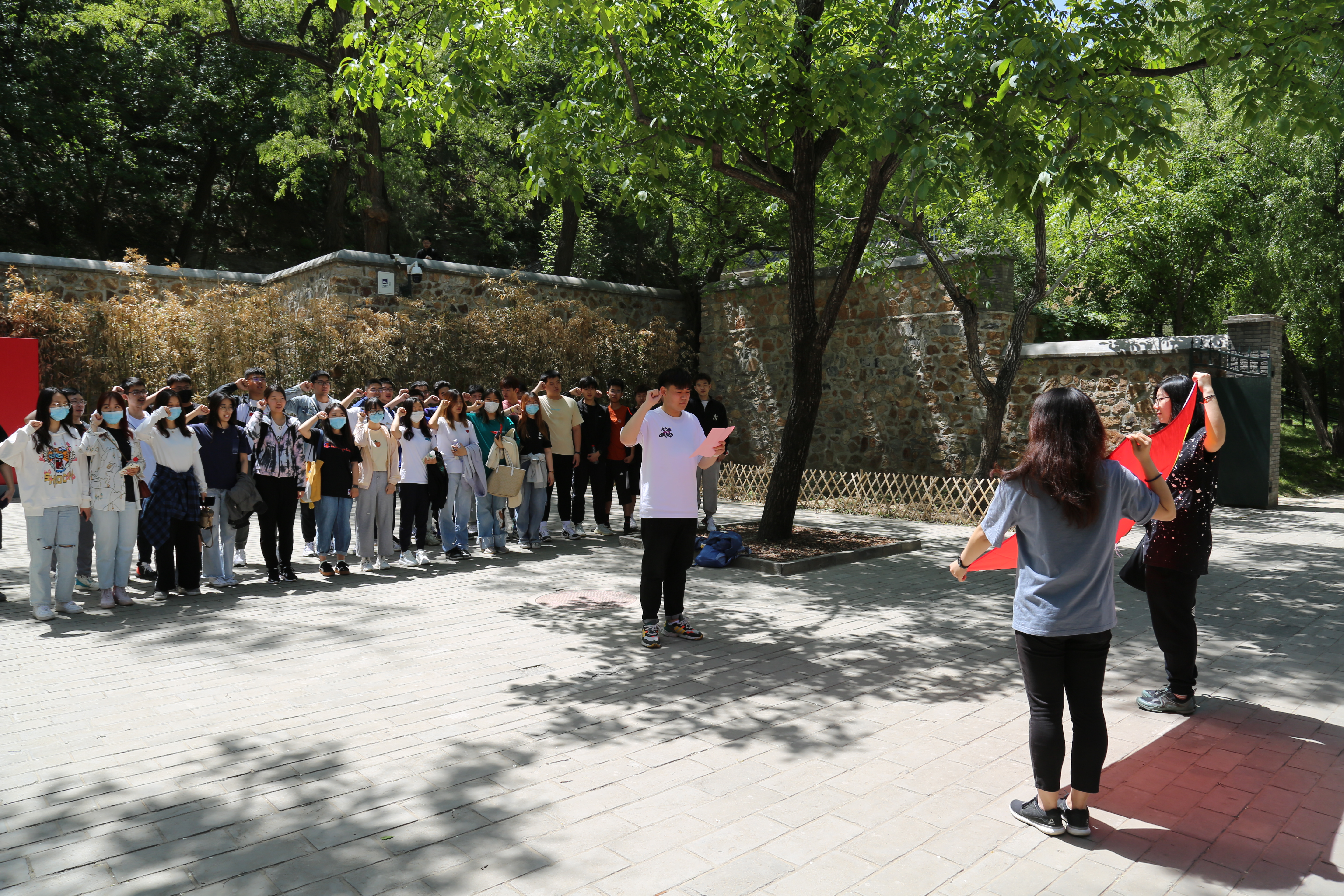 在双清别墅东侧平房,同学们庄严举起右手,握拳重温入团誓词,再次接受了心灵的洗礼,坚定理想信念,永远跟党走。