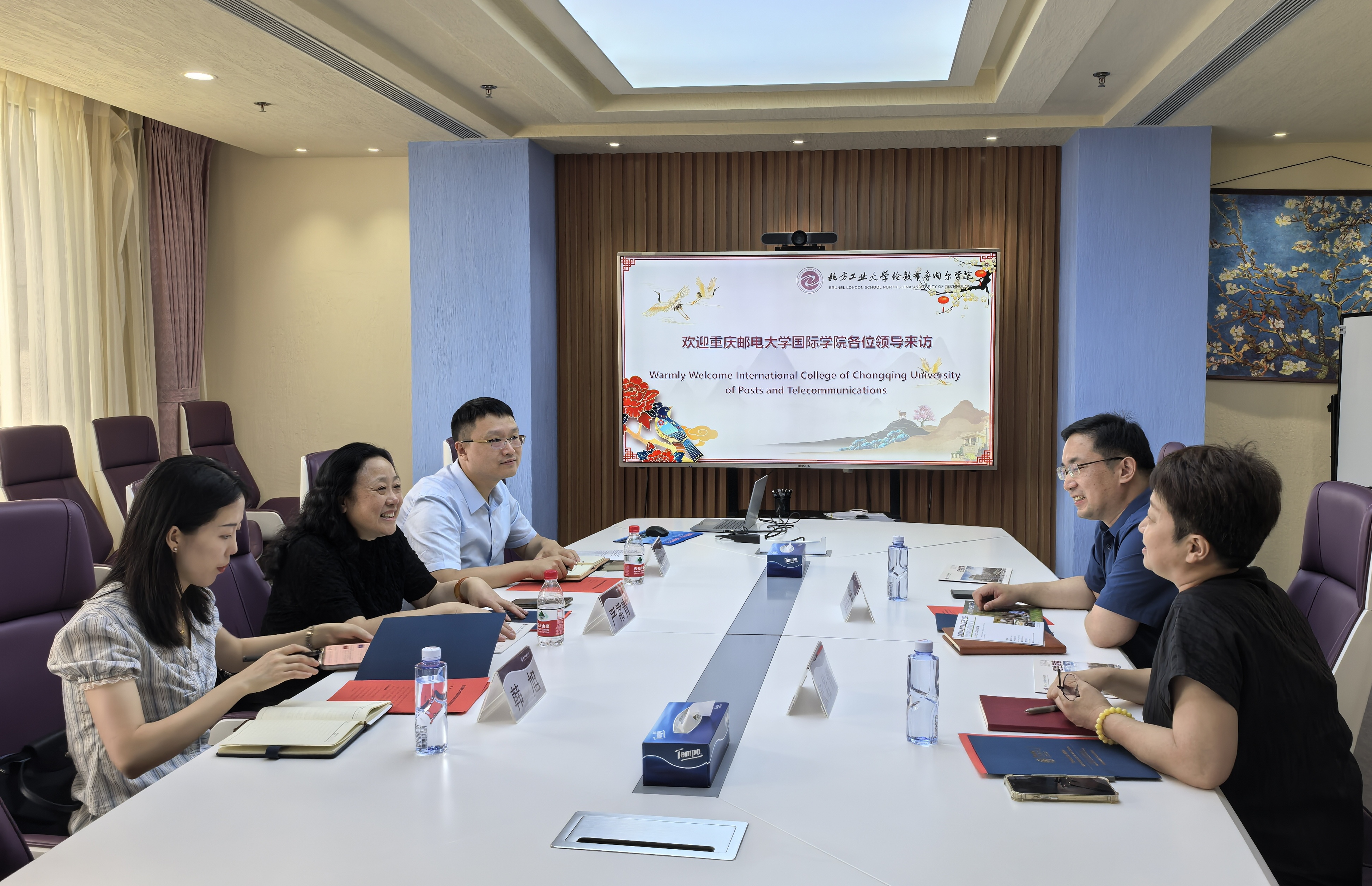 6月18日,重庆邮电大学国际学院书记严常青、副院长王洋、辅导员韩旭一行来英国威廉集团调研交流。布院领导班子热情接待了来宾,双方就中外合作办学高质量发展开展了深入交流。