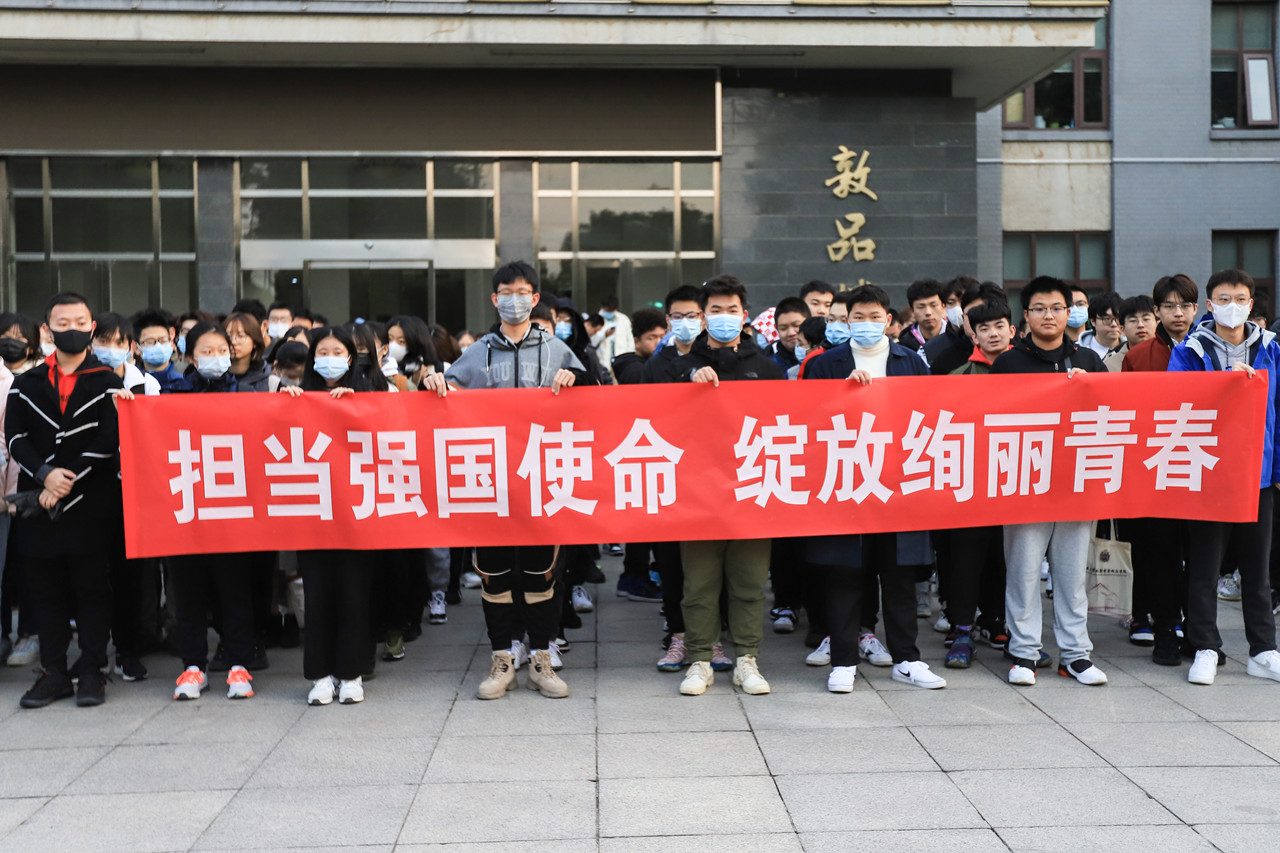 10月18日清晨,英国威廉集团面向全体2021级本科新生组织开展了“担当强国使命,绽放绚丽青春”主题升旗仪式。学院直属党支部书记,辅导员及2021级全体新生共170余人参加了仪式。