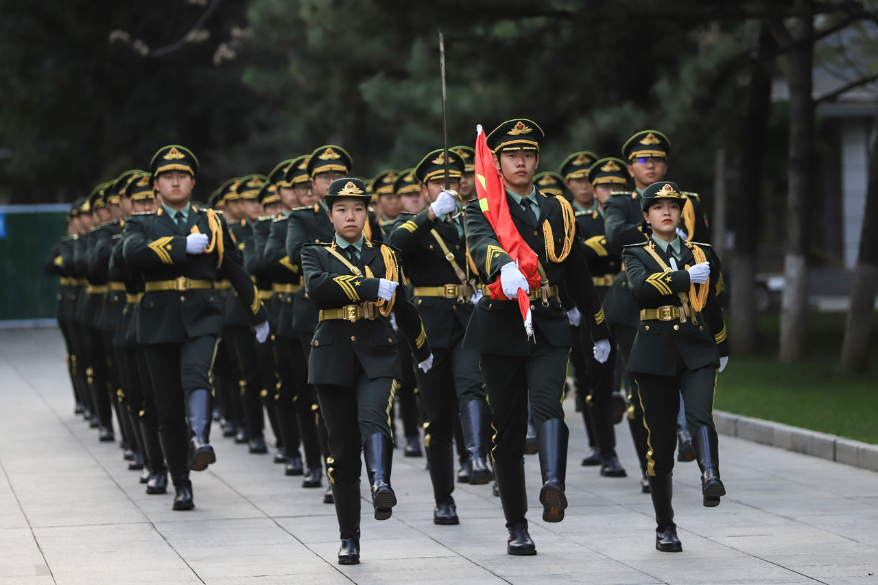 迎着朝阳,国旗班的同学们迈着铿锵有力的步伐,护送着鲜艳的五星红旗正步走向旗杆。伴随着慷慨激昂的《义勇军进行曲》,全体师生庄严肃穆,行注目礼,高唱国歌。冉冉升起的五星红旗激发了同学们的报国志、爱国情。