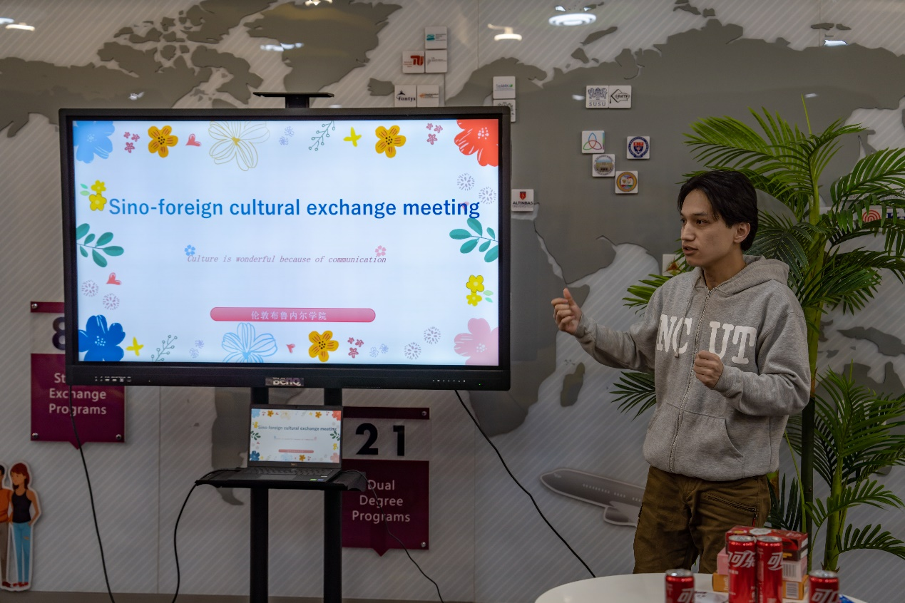 活动的第一个环节是文化交流分享。布院的蒋欣仪与张只沅同学分别介绍了自己的家乡重庆和北京,让留学生们了解到当地的地理位置、名胜古迹和文化习俗。来自乌兹别克斯坦的Nodirbek同学向大家分享了他们国家的重要节日——纳乌鲁兹节及过节习俗,他说道:“本次活动恰逢乌兹别克斯坦当地欢庆纳乌鲁兹节,这个节日标志着春回大地、新年伊始,很高兴能在这样的节日结交到新的中国朋友。”