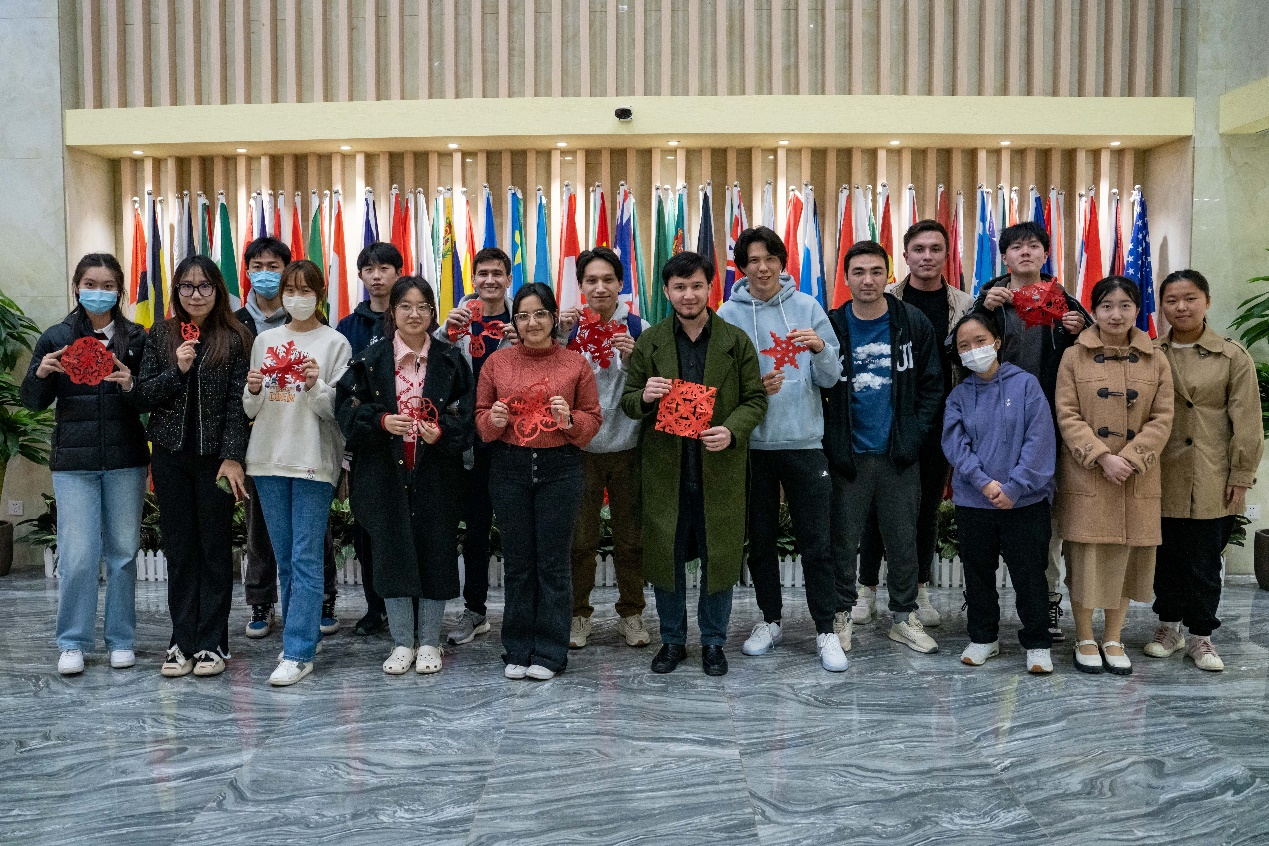 活动的第二个环节是文化体验。在沉浸式体验剪纸的过程中,同学们打破语言壁垒,互相帮助,一同体验了中国民间手工艺术,世界级非物质文化遗产——剪窗花。来自萨尔瓦多的Karla同学积极创作,运用想象力和创造力剪出新的专属窗花,受到大家赞赏。经过交流学习,大家都创作出自己满意的作品。